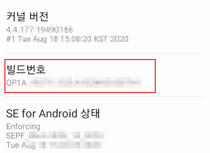 4. 빌드번호를 6~7회 터치 합니다. 그럼 개발자 모드가 켜집니다.